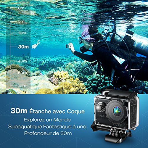 Caméra Sport Étanche Full HD 1080P 30M, VicTsing Caméra Embarquée Sportive Multifonction Caméscope d'Action Haute Définition 170 Degrée Grand Angle Appareil Photo Sous Marin pour Vélo, Moto, Plongée, Ski, Natation, etc