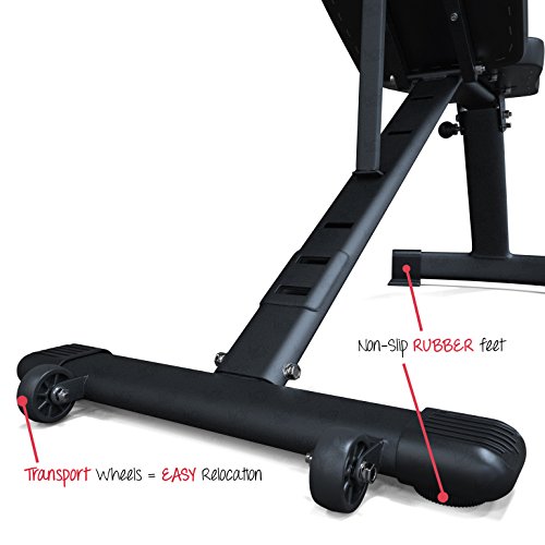- Ce banc de poids est le summum de toutes les séances d'entraînement de poids et banc rond gratuits. Ce banc offre acier et travaux de peinture de haute qualité et a des pieds en caoutchouc pour maintenir le cadre métallique d'endommager le plancher et à garder le banc en place. Réglage facile de dossier et le siège. Adopter à la plupart des supports à squat, les cages et les machines Smith. Ce banc est fait pour prendre autant que vous pouvez lui donner et le banc ultime pour un entraînement complet! Solide, compact et efficace. La Nous ★ ★ R Sport Banc est inégalée dans sa catégorie et vous donnera des séances d'entraînement intenses et solides pour de nombreuses années à venir!