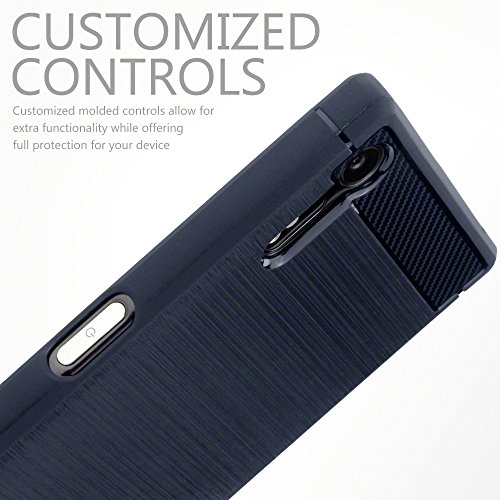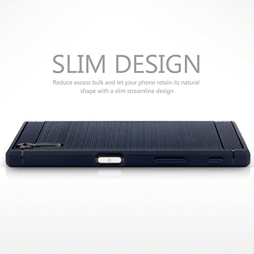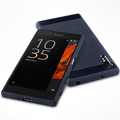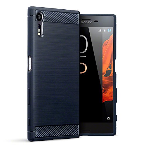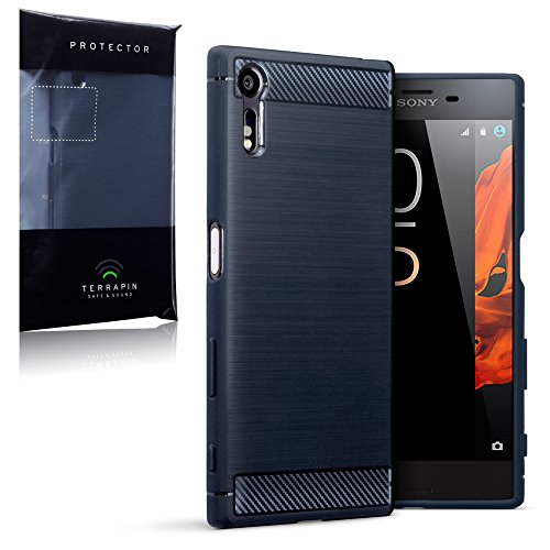 Coque Xperia XZ / XZs, Terrapin Étui Coque en Gel TPU pour Sony Xperia XZ / XZs Housse - Textures en Fibres de Carbone Conception Solide Bleu Foncé