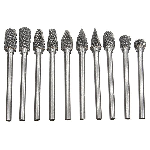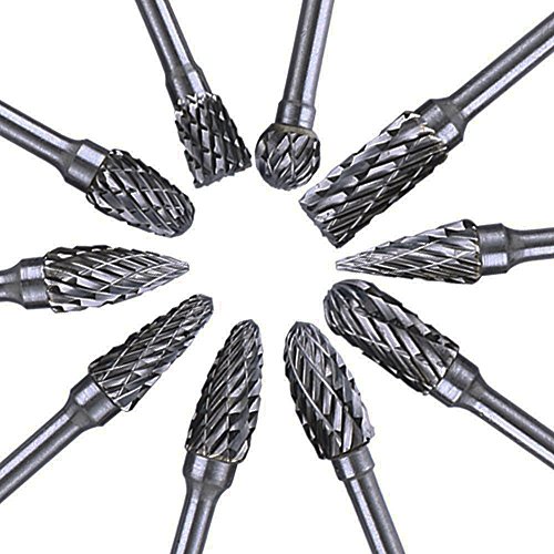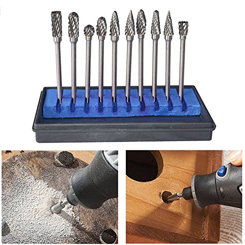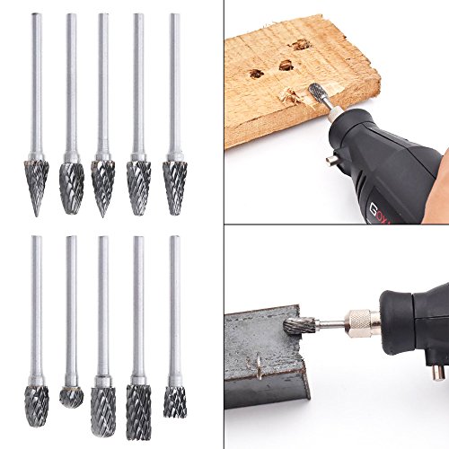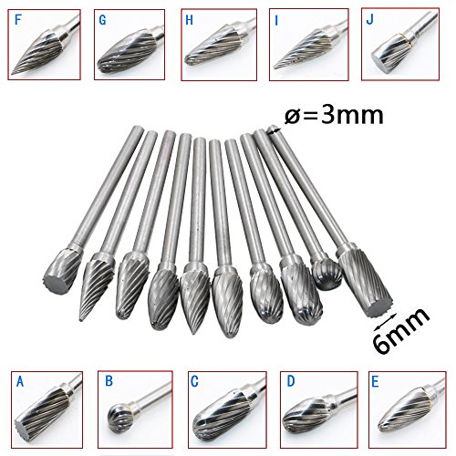 Yakamoz 10 pcs Double Coupe de Tungstène Burres Rotatives en Carbure Massif En Acier Set Tige Avec 1/8" (3mm) Foret de Torsion de Tiges Pour Outils Rotatifs Dremel