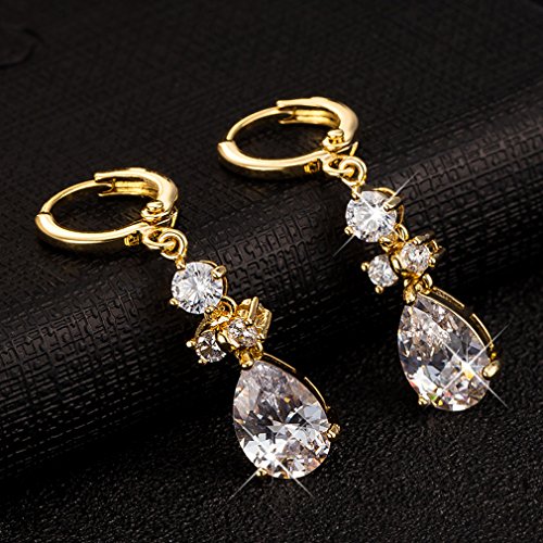 YAZILIND Hoop Dangel Boucles d'Oreilles Idées cadeaux femme luxe 18K plaqué Or blanc Tear Goutte de cristal autrichienne