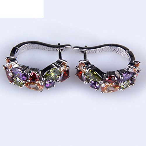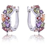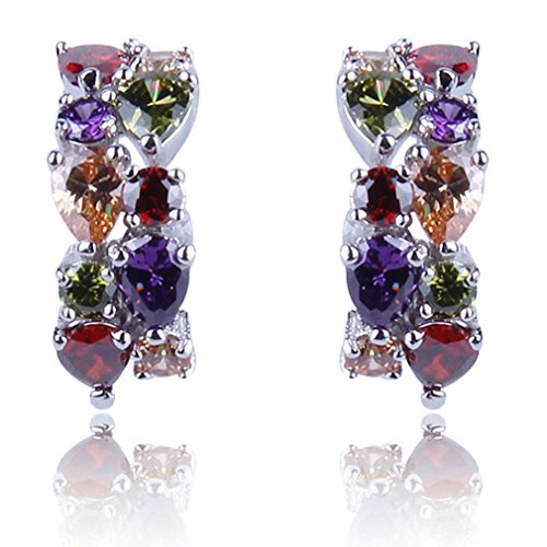 YAZILIND éblouissant Plaqué Rhodium Coloré Ronde Coupe de Poire Parfait Zircon Griffe Petit Boucles d'oreilles