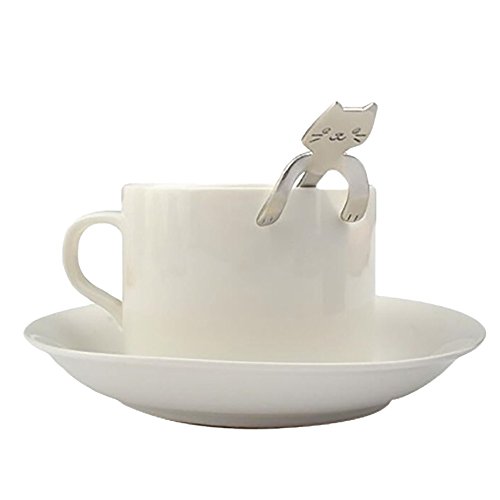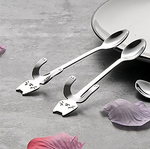 Yogogo Mignonne CuillèRe à Chat CuillèRes à Long Manche Couverts Outils De Consommation De Café Gadget De Cuisine (Argent)