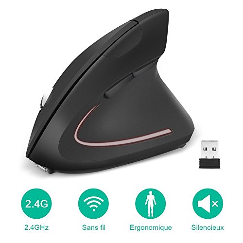 YOHOOLYO Souris Ergonomique à 2,4 GHz Souris Verticale Sans Fil Suivi Optique 800/1000/1200DPI Prévention du Tendinite Convient pour Windows/Mac OS X/Linux