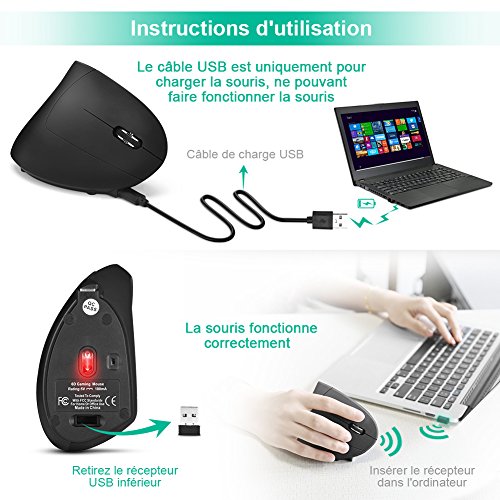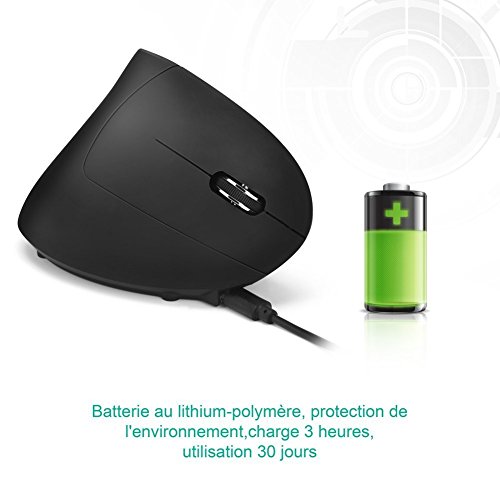 Avec une batterie rechargeable au lithium-polymère, la souris ergonomique peut être utilisé pendant la charge.