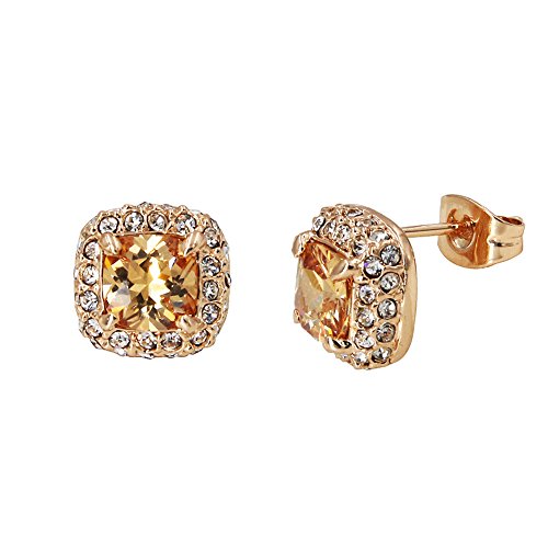 Yoursfs Boucles d'oreilles clous 18k Or plaqué Pendante en Citrine et Cristal pour Femme comme Accessoire ou Cadeau Anniversaire Saint Valentin