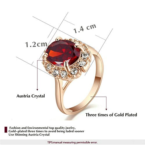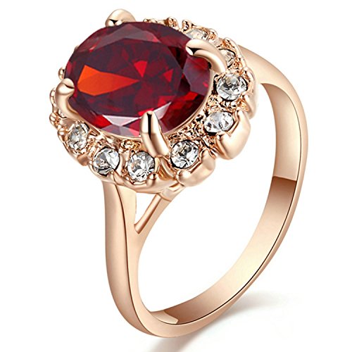 Yoursfs Bague mariage 60mm 18k Or rose plaqué Solitaire en Grenat et Diamant pour Femme ou Fille comme Cadeau soirée