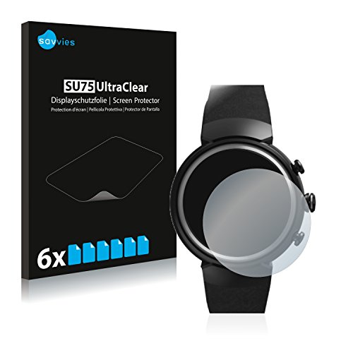 La couche adhesive spécialle garantit une montage simple et sans bulles. Une nettoyage facile sans trace où un repositionnement reste possible à tout instant.Savvies® SU75 UltraClear Films de Protection d'Écran sont découpés précisément au laser en Allemagne sur des machines ultramodernes. Nous pouvons donc garantir une découpe précis, les contours parfaitement et une adhérence optimale au bord et aux coins. 6x Savvies SU75 Film de Protection d'Écran pour Asus ZenWatch 3 1.39" (6x Devant).