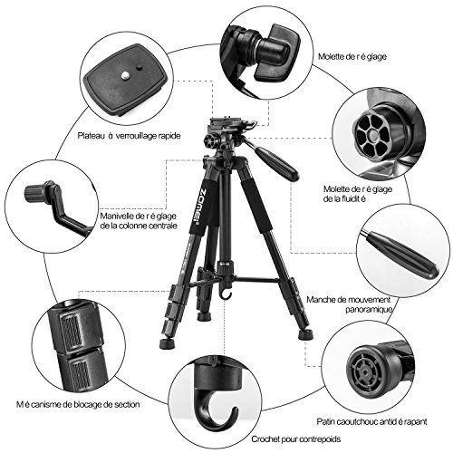 - ULTRA LEGER: : La fabrication de ce trépied en matériaux léger le rend compact, léger (1.18kg) et élégant.