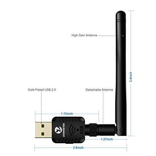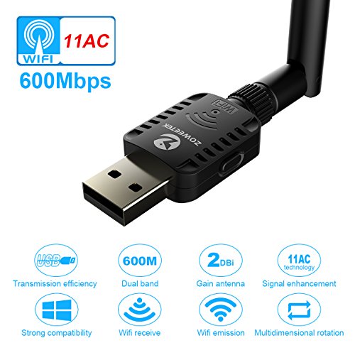 Zoweetek® Clé USB Wifi 600Mbps Mini Wi-Fi Dongles Adapteur Réseau Sans Fil Avec Antenne Bande Jusqu'à 5GHz 433Mbps ou 2.4GHz 150Mbps Pour Windows XP/Vista/7/8/8.1/10 (32/64bits)/MAC(10.6-10.13)