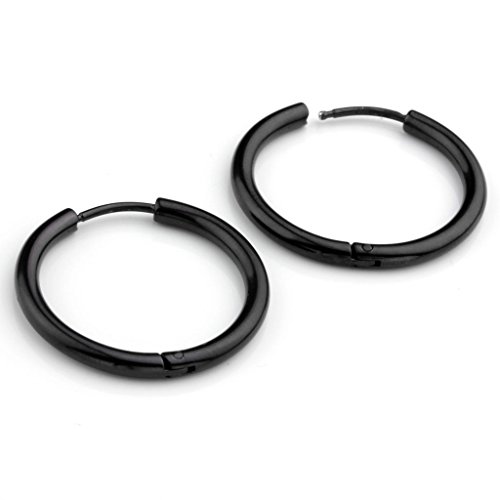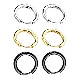 Zysta Bijoux 3 Paires Creoles Boucles D'oreille Anneau Rond pour Homme Femme Unisexe Acier Inoxydable Argent Noir Or
